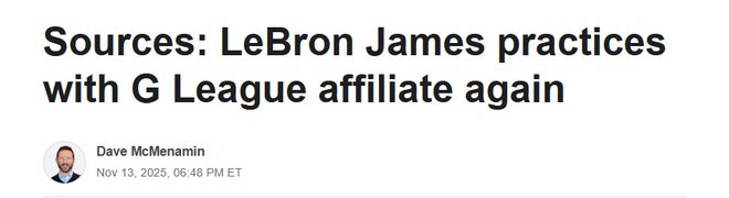 北京时间11月14日,消息人士告诉ESPN,勒布朗-詹姆斯今日再次与发展联盟南湾湖人队一同训练,且未出现昨日训练后的任何遗留不适——这是一个积极信号,毕竟这是他自六个多月前季后赛首轮以来,首次参与五对五对抗训练。